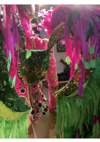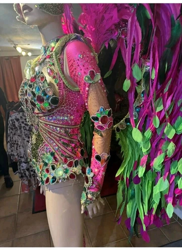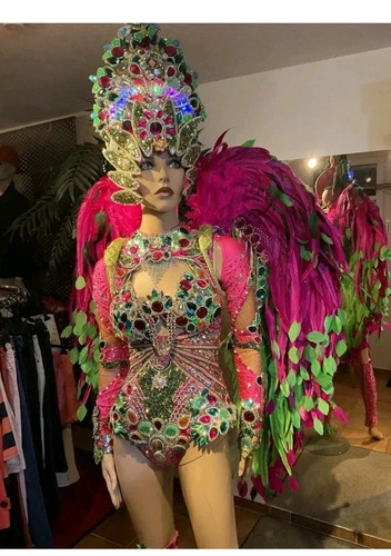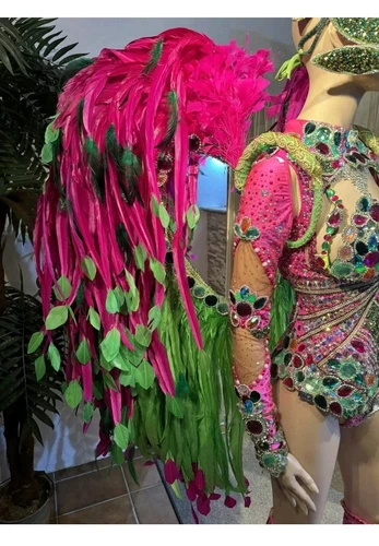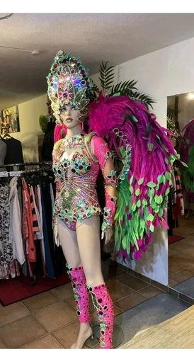Das Samba Kostüm von Musas Atelier hergestellt in Rosa ist ein professionelles Showkostüm aus Brasilien, das perfekt für den Karneval geeignet ist. Dieses einzigartige Designerstück mit Kristall und Strassverzierungen ist ein Set, das jedem Auftritt eine glanzvolle Note verleiht. Ideal für besondere Anlässe und Verkleidungen, ist dieses Accessoire ein echter Hingucker und wird sicherlich alle Blicke auf sich ziehen.